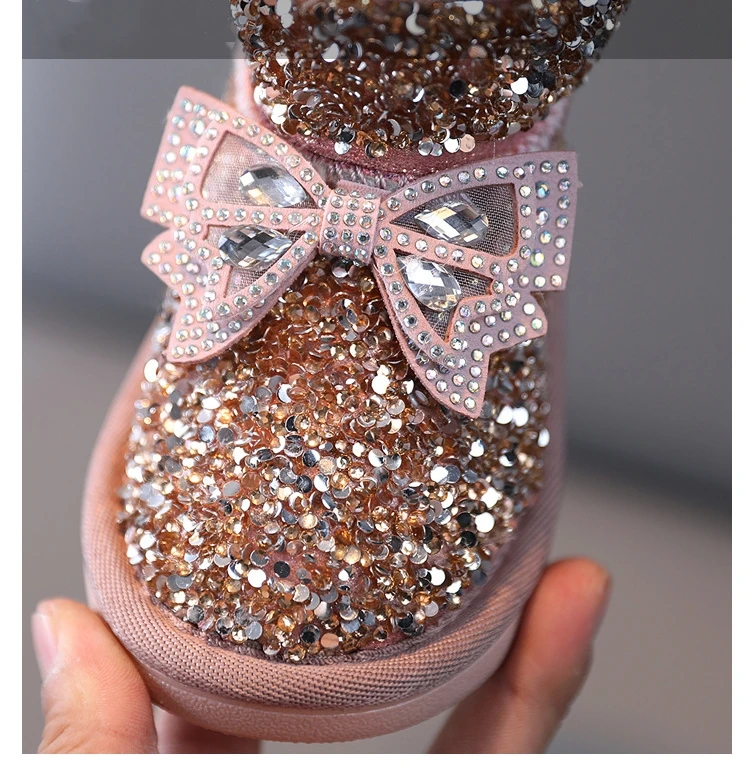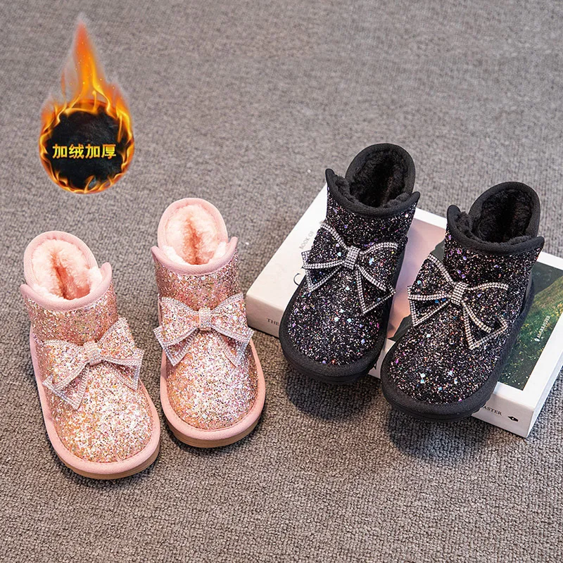 Princess Fancy Kid's Shoes Winter Warm Infant Cotton Soft Ankle-Height Sequins Glitter Breathable Snow Boots for Girls